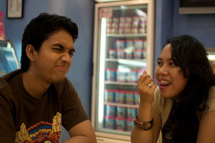 “Wah, Eka mau lunch date nih,” terdengar suara centil yang disambung dengan tawa dari teman-teman lain. Wajahku pun sukses berubah merah padam menahan malu sekaligus deg-deg.an. Hari itu hari Kamis, di lobby. Di sofa depan yang jaraknya gak lebih dari 10 meter itu duduk pria yang telah sekitar 3 bulan selalu menyapa dan melakukan pendekatan. Dan sekarang… Tanpa ba bi bu, ia mengajak ketemu. Sumprit gugup! Keringat pun mulai membanjiri tubuh. Maka make up pun mulai kacau.. Dan yang parah…. Baju pun jadi lecek tak karuan karena keringat berlebih Ihiks 😦