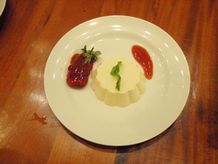 Untuk dessertnya kami pesan Honey Alacarte. Puding dengan sedikit rasa madu dan disajikan dengan saus strawberry. Puddingnya itu rasanya soft banget, hampir plain tapi kalo dirasin bener-bener maka akan terasa madunya. Dipakain sausnya, uummm YUMMY banget! Sayang saya udah kekenyangan, kalo enggak pasti bakal nambah tuh Honey Alacarte.nya hehe.