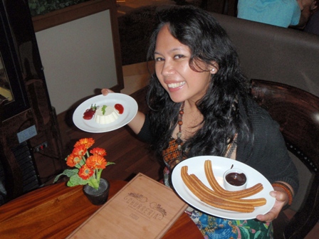 Eh? Koq kelihatannya saya pinter banget yah? Hihihi… Well, saya baru tau semua fakta tentang cokelat itu ketika akhir pekan ini saya mampir ke Churreria Cafe di Grand Indonesia. Ya, ya, sudah tau kan bahwa kalo wiken saya dan suami hobby banget ngukur jalan muter-muter kemana gituh :mrgreen:. Nah semua info tentang cokelat itu ada di buku menunya. Saya penasaran sama cafe ini soalnya ada penawaran diskon 51% dari Disdus. Kapan lagi bow bisa makan setengah harga coba? 😉