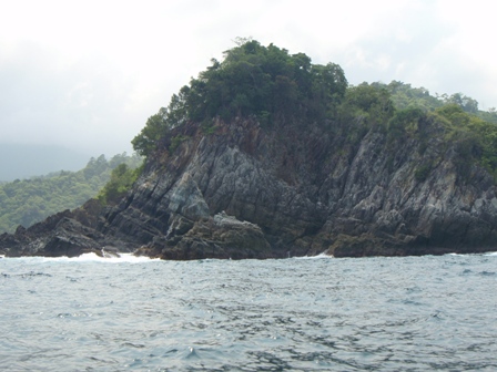 Pantai Pegadungan ini sebenarnya bisa dicapai dengan dua cara, jalan darat atau jalan laut seperti yang saya dan teman-teman lakukan.  Tapi apa lacur, ombaknya besar karenanya kami tidak bisa merapat, alhasil kami cuma bisa memotret beberapa bagian karang/batu saja.
