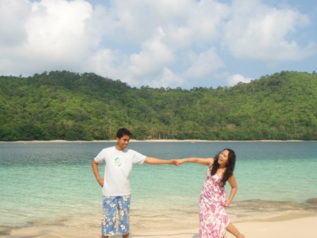 Selesai berpanas-panas di Jungkung, next destination kami menuju ke Pulau Kelapa yang juga sering di sebut sebagai Pulau Kiluan. Penasaran apa arti kiluan? Apakah artinya ngilu dari kata kilu? Begitu? :mrgreen: Bukan sayang, kiluan itu bahasa daerah Lampung yang berarti permintaan. Jadi konon ada orang sakti yang meminta dikuburkan di Pulau Kepala jika ia meninggal. Dan semenjak itu Teluk ini dinamakan Teluk Kiluan alias Teluk Permintaan. Pulau Kelapa ini sendiri adalah pulau kecil yang bisa kita kelilingi berjalan kaki selama 30 menit saja. Kecil bow pulaunya.. Walau begitu pas jalan keliling-keliling gitu rada takut juga, siapa tau saya menginjak kuburan orang sakti tersebut. Wiiii.