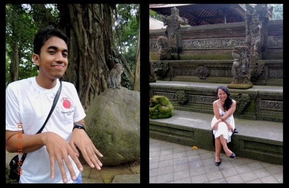 Adrian coba niru-niruin pose si monyet! Duh, untung monyetnya gak marah, Bang :mrgreen:. Ahya di dalam hutan ini ada pura yang lumayan bersih, cuma karena puranya terkunci, saya numpang poto aja deh di depannya 😀 hehe