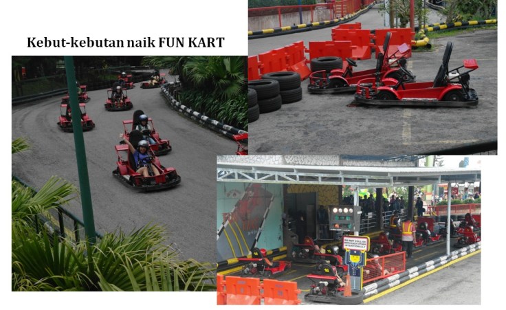 Setelah puas dengan wahana yang menguji stamina jantung, kami menuju ke Fun Kart. Kalau kamu mau ngerasain balapan F1 tuh mesti ke sini! Seru banget bisa ngebut-ngebut muterin sirkuit begitu. Eh saya juara II lho padahal start saya belakangan. Well, nampaknya darah Medan saya tidak menipu! Hihihi. Hayo siapa berani balapan sama saya? 😀