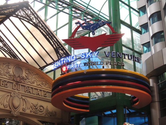 Seperti janji saya tempo hari, saya mau cerita tentang Sky Venture. Well, awal-awal waktu Bowo dan Titiw bilang bahwa tujuan terakhir di Resorts World Genting adalah Sky Venture, saya sempat mengerutkan kening. Heh? Sky Venture?! Apa tuh? Titiw dan Bowo berusaha menjelaskan artinya dengan bahasa sederhana. Katanya tuh nanti kita terbang. Terbang? Pakai apa? Apa ada tali dicantelin gitu di badan kita? Tanya saya penuh kebingungan karena gak ada bayangan sama sekali.
