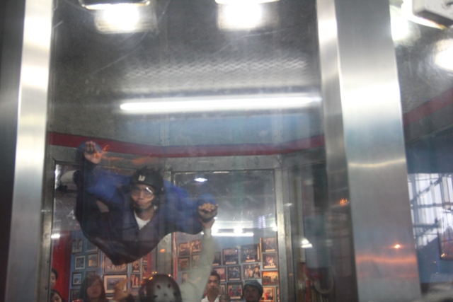 Tanpa tahu seperti apa itu Sky Venture, saya memasuki areal Sky Venture dengan penuh percaya diri. Di dalam ada ruangan berbentuk silinder gitu dimana tekanan angin dihembuskan dari bawah dan saya lihat satu bule terbang! Aaaaaaa, pengeeen! Tapi gak bisa cepat-cepat, karena kamu harus mengisi formulir, berganti baju, sepatu dan mendengarkan briefing mengenai dasar-dasar simulasi Sky diving terlebih dahulu. Dijelaskan juga bahasa isyarat yang digunakan. Well, Kalo terbang dengan tekanan angin yang tinggi kan gak bisa ngobrol jadi bahasa isyarat itu penting banget!