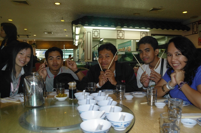 Bunch of hunger peeps, ready to eat anything, look at our chopsticks! 😀