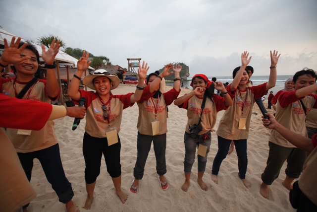 Lagu yang dipopulerkan oleh Bob Marley tersebut terngiang-ngiang terus di kepala. Bukan tanpa sebab sih, pada saat kelompok kami (kelompok Indrayanti) diminta membuat yel-yel, kami menyanyikan lagu ini dengan sedikit modifikasi plus geal-geol tarian. Hahaha ^_^ Koq bisa ada tim Indrayanti ke Pantai Indrayanti (redundant banget gak sih? Hahaha) buat yang belum tahu silakan baca ini dan ini dulu.