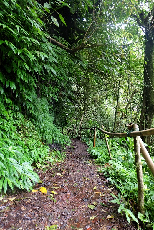 Saya tersenyum mendengarnya walaupun hati tetap agak khawatir. Bukan apa-apa, kalau trekking kehujanan itu biasa, paling basah aja, kan? Tapi, trekking kami kali ini agak beda. Kami membawa Bastian, anak kami yang berusia 2,5 tahun, makanya saya agak was-was. Btw jangan lupa baca Tips Travelling Seru Membawa Bayi sebelum bepergian ya biar liburannya lebih asyik. Anw, sambil menunggu tetes hujan mereda, kami pun duduk memesan kopi dan mi instan di warung yang berada di mulut jalan setapak kecil menuju Air Terjun Banyumala. Ternyata, pernyataan Pak Supir itu ada benarnya, 30 menit kemudian, cuaca kembali cerah, sehingga kami dapat melanjutkan perjalanan.