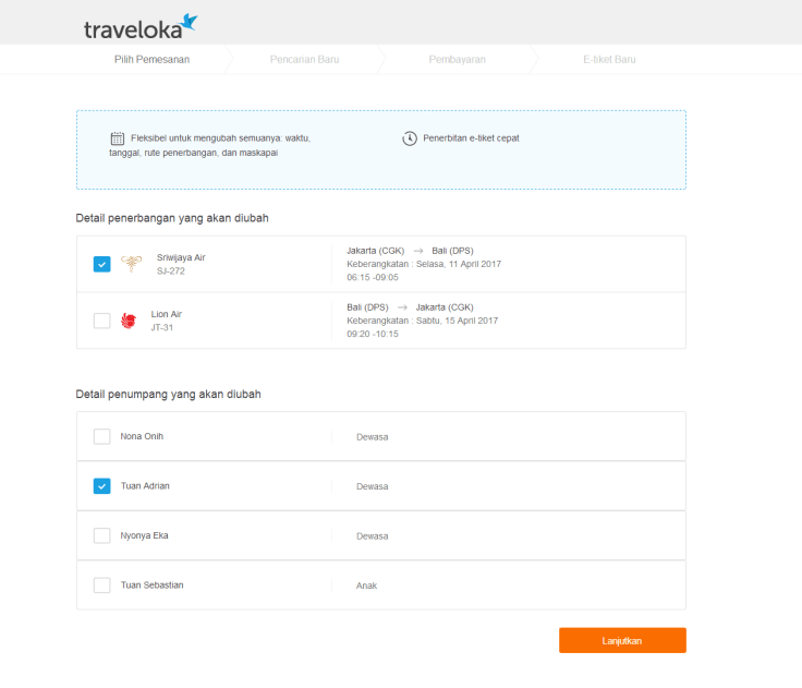 1. Di Easy Reschedule, kita bisa ganti jadwal satu orang aja, nggak mesti semua nama di dalam satu tiket. Yeay! Nggak ribet.