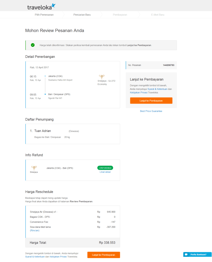 Abis itu tinggal tunggu tiket baru yang dikirim via email dan Traveloka App deh. That simple!