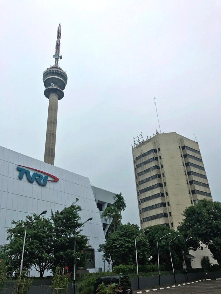 Sampai di Gedung TVRI jam 6.30, masih mendung-mendung syahdu gitu 😀
