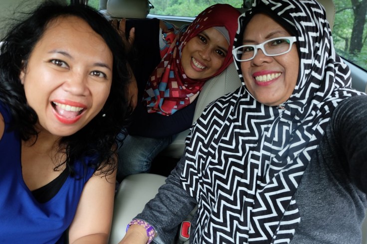 Saya sih sudah biasa dengan medan jalanan seperti ini, gini-gini saya udah nyetir sampe Danau Toba lho 😉 hahaha. Supir Medan, Bung! Tapi nampaknya Kak Indah Juli yang duduk di depan bersama saya meragukan kemampuan saya menyetir. Berulang kali ia menjerit atau berteriak saat mobil kami berpapasan dengan mobil lain, puncaknya saat mobil kami berpapasan dengan truk di sisi kanan sementara di sisi kiri jurang, yang berakibat ban depan agak miring menuju jurang. Lengan saya habis dipukulin kak Indjul >.< Hahaha, saya sih santai saja waktu itu tapi sempat panik karena melihat kak Indjul panic. Kalau Irha sih cengengesan aja di kursi belakang (walau saya nggak tahu mungkin saja ia juga sudah merapal doa macam-macam dalam hati. Hahaha).