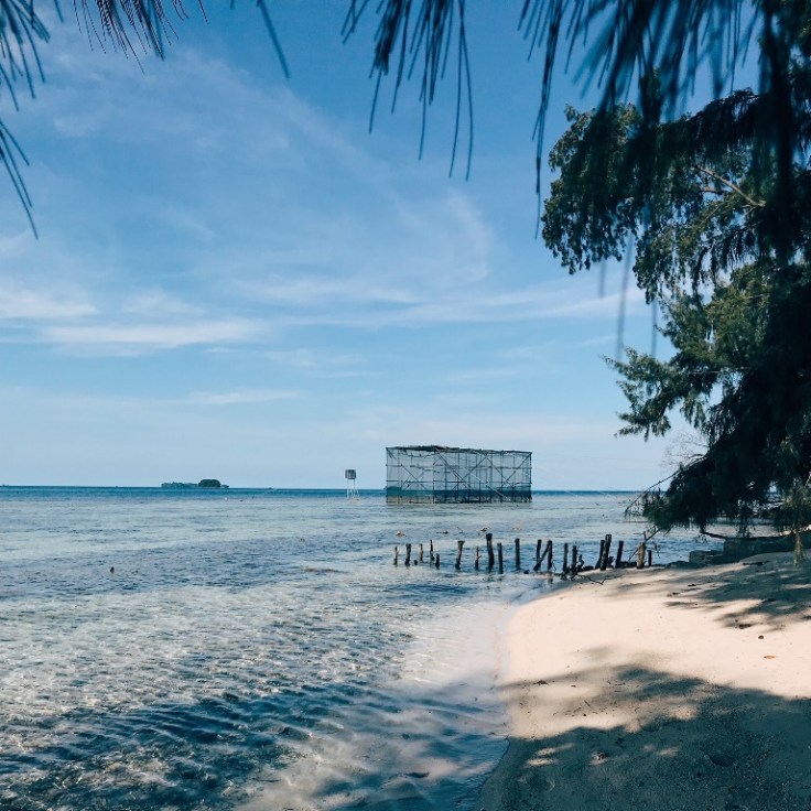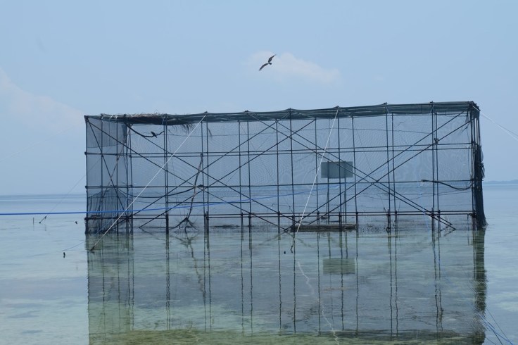 Kandang Pre-Release Konservasi Elang Bondol di Pulau Kotok. Di sini, Elang sudah hidup di laut dan berusaha menangkap ikan sendiri dari air laut.