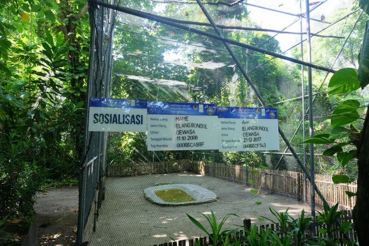 Kandang Sosialisasi pertama, di mana para elang masih dimanja. Makanan dapat diraih dengan mudah.