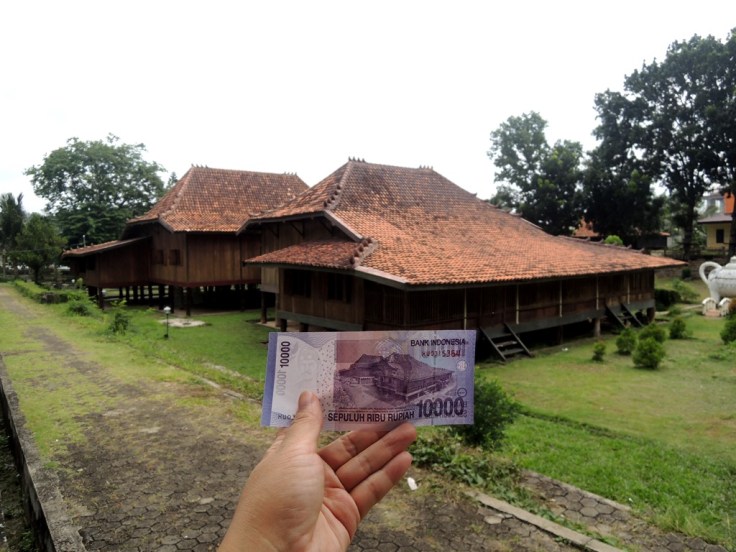 Rumah Limas ini sudah berusia ratusan tahun namun tetap terawat dengan baik. Pssst rumah panggung yang terbuat dari kayu ini adalah gambar rumah yang ada di selembar uang 10.000an lama. Aih, seneng banget bisa berfoto sesuai gambar duit hehehe.