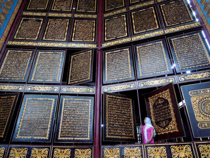 Belum pernah saya melihat Alquran yang sangat besar seperti di sini. Saking besarnya maka banyak yang menyebutnya sebagai Alquran raksasa. Memakan waktu pembuatan hingga 7 tahun, terdapat 30 juz ayat Alquran yang diukir di kayu tembesu. Pertama dan terbesar di dunia!