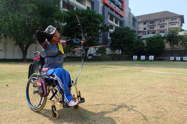 Senyum sumringah gadis manis berkulit coklat terkembang saat ia meletakkan busurnya. Dibantu pelatihnya, Ijah Khadijah, pemudi asal Indramayu ini mendorong kursi rodanya untuk mengambil anak panah yang tadi dilepaskan. Sebelah kakinya tidak ada sehingga ia harus duduk di kursi roda. Namun keterbatasan tidak mengurangi tekadnya. Ia terus berlatih demi harapan meraih prestasi.