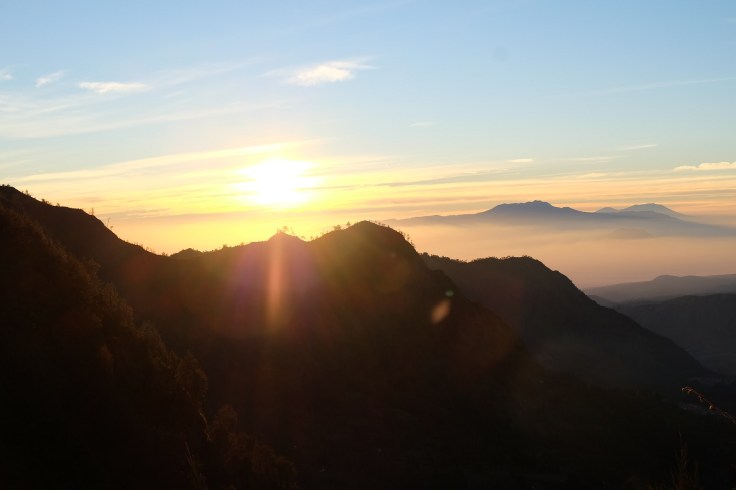 Berdiri diam dalam keheningan sementara perlahan cuaca mulai terang itu adalah momen yang menurut saya sangat pribadi. Dalam keheningan justru dada dan kepala terasa riuh dengan percakapan dengan diri sendiri, dengan cita-cita dan impian yang ingin digapai serta doa-doa kepada Sang Pemilik Kehidupan. Hening yang menenangkan walau hanya sebentar karena sayup-sayup makin banyak orang datang dan suasana berubah jadi ramai. Ah, sekarang saya paham kenapa kami harus berangkat pagi-pagi buta, ternyata supaya kami mendapatkan spot melihat matahari terbit yang terbaik. Di tengah keramaian orang yang makin lama makin banyak datang, rasanya sulit mendapat spot cantik jika kami datang terlambat.