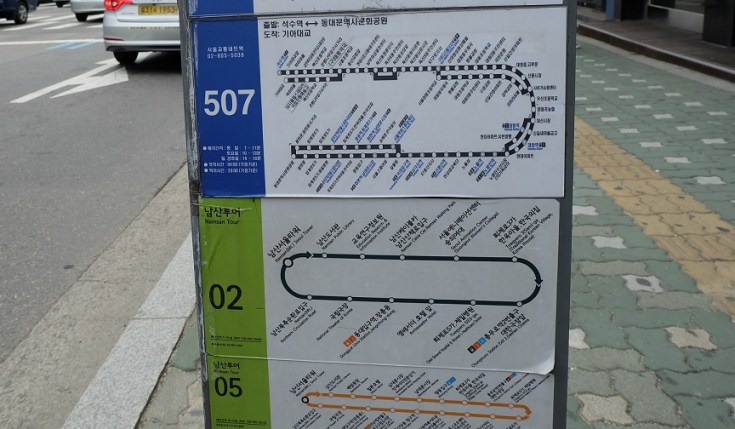 - Naik kendaraan umum yaitu bus. Ada 3 rute shuttle bus untuk ke Namsan Seoul Tower yaitu rute nomor 02, 03 dan 05 yang melayani rute-rute berbeda. Kenapa cuma rute nomer 02, 03 dan 05? Nomor 1 dan 4-nya ke mana? Itu saya nggak tahu. Hahaha.