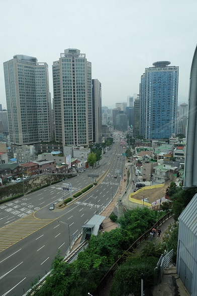 Tetes hujan sudah mereda saat sore menjelang dan membuat kami bergegas pulang. Anuh, masih mau belanja abis ini hahaha. Kalau tadi pas berangkat kami naik bus maka pulangnya kami mencoba naik cable car alias gondola. Seru banget melihat perubahan warna di bahwa kami yang awalnya hijau dari pohon-pohon di hutan berubah menjadi abu-abu dari hutan gedung-gedung tinggi. Ah, berwisata ke Namsan Seoul Tower ini paket puas banget jadinya.