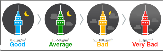 Jika lampu Namsan Seoul Tower berwarna merah itu artinya udara luar sangat terpolusi dan pilihan paling untuk masyarakat serta para wisatawan untuk menghabiskan waktu mereka di dalam ruangan , hingga kondisi udara berubah lebih baik.